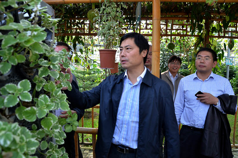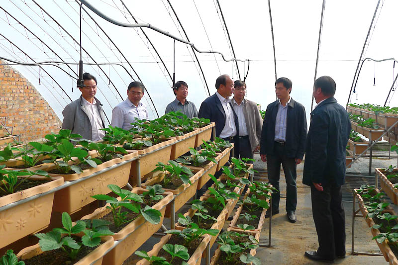 视察草莓立体栽培新技术