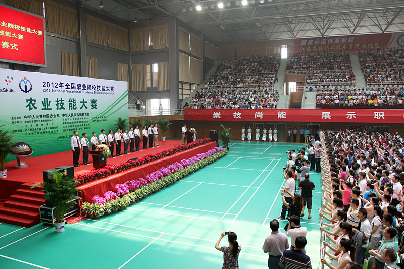2012年全国职业院校技能大赛农业技能大赛于6月13-14日在永利官网成功举行。13日上午九点,大赛开赛式在学院体育馆隆重举行。开赛式由教育部职成司刘杰处长主持。农业部科教司副司长孙文龙等农业部、教育部和江苏省等有关领导出席并一同按下启动球,在灿烂烟花中正式拉开2012年全国职业院校职业技能大赛农业技能大赛的帷幕。