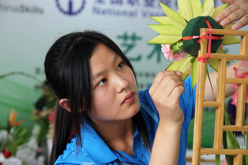 艺术插花项目比赛现场选手一丝不苟