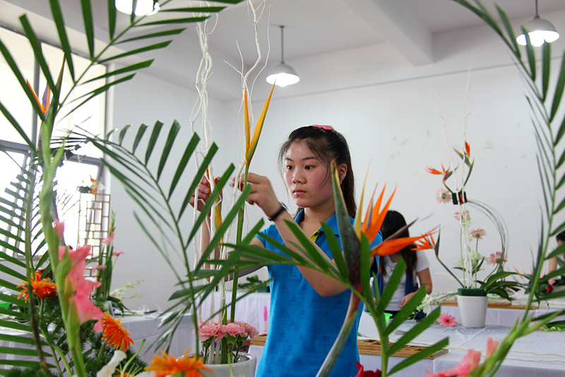 62名中职选手参加了此次艺术插花比赛,比赛内容为根据现场抽取的主题,利用现场提供的花材和器具,在规定时间内,完成插花作品,并填写作品名牌及主题表现说明。