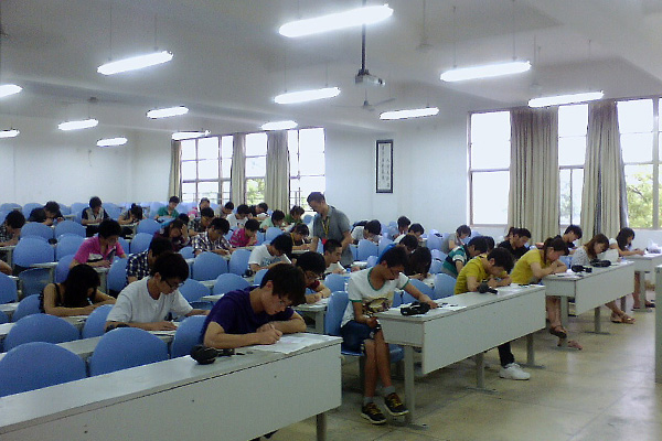 6月16日、17日两天,永利官网2012年上半年英语考级工作在校本部、茅山两个校区顺利进行。本次永利官网开考级别分别为全国大学英语四、六级,高校英语应用能力A、B级,总计考生近7000人次。学院对此考试十分重视,英语考级办认真组织了监考教师培训会议,市考办及相关人员认真仔细巡视考试现场。在英语考级办和全院师生共同努力下,考试纪律严明、考场秩序井然,永利官网今年上半年英语考级工作圆满结束。
