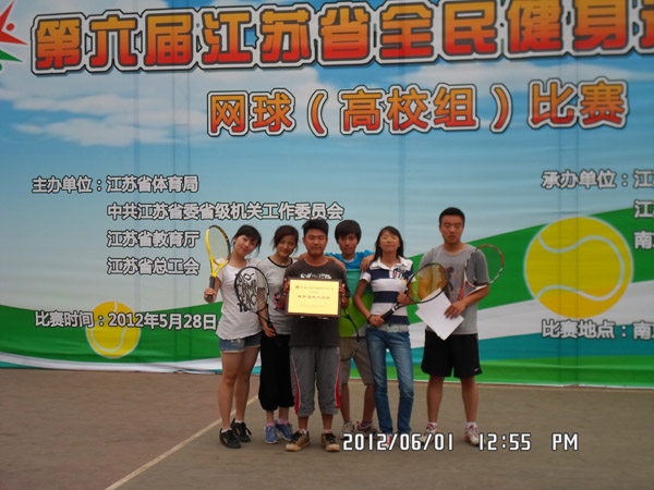 5月29日—6月1日,第六届江苏省全民健身运动会网球(高校组)比赛在南京信息职业技术学院举行。本次比赛由江苏省体育局、中共江苏省委省级机关工作委员会、江苏省教育厅、江苏省总工会主办,江苏省社会体育管理中心、江苏省学生体育协会、南京信息职业技术学院承办,共有27所本、专科院校的134名运动员参加比赛。