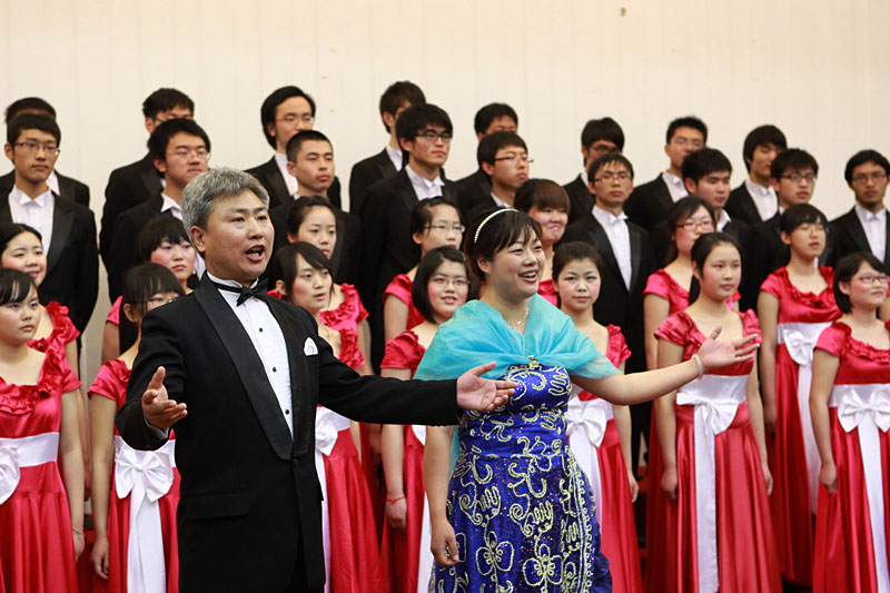 本次高雅艺术进校园活动学院特别邀请到了省委宣传部、教育厅和财政厅遴选的江苏省高雅艺术进校园拓展项目——南京理工大学大学生合唱团。演出的曲目兼具了高雅经典和时代元素,《我的太阳》、《谷穗上的蝈蝈》、《乡间的小路》、《在希望的田野上》一首首歌曲,感染着现场的观众,气势磅礴的混声合唱《心愿》赢得了现场学生长时间的掌声,永利官网杨春梅、费柯两位老师的助演也使得这场演出中两校交流更具深意。精彩的演出博得了师生的一致好评,演出在观众热烈掌声中圆满落下帷幕。