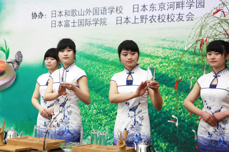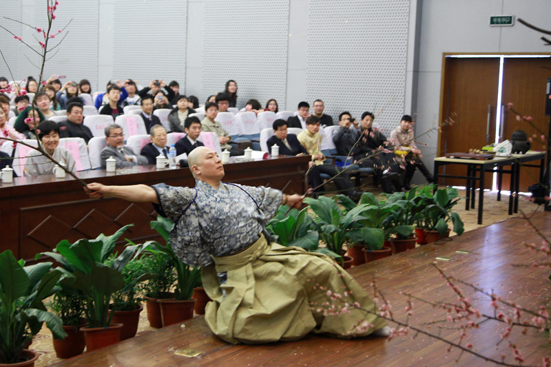 当天下午,还分别举行了第九届“中林杯”日语演讲比赛、茶道表演、花道表演及书法等交流活动。