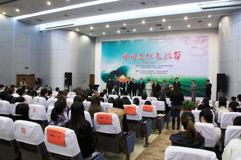 经多年来致力于中日友好和中日文化交流的日本中林牧场、日中文化协会等相关人士大力倡议,江苏省人民对外友好协会协调,为纪念中日邦交正常化40周年,3月28日上午9:00,“中日文化交流节”开幕式在学院图书馆报告厅举行。省对外友好协会秘书长扈海鸥、学院院长俞卫东等领导和日本日中文化协会会长上山绫子、中林牧场社长中林正悦等日本友人、学院日本外教、日语教师及日语专业学生等参加了开幕式。开幕式由学院副院长苏小冬主持。