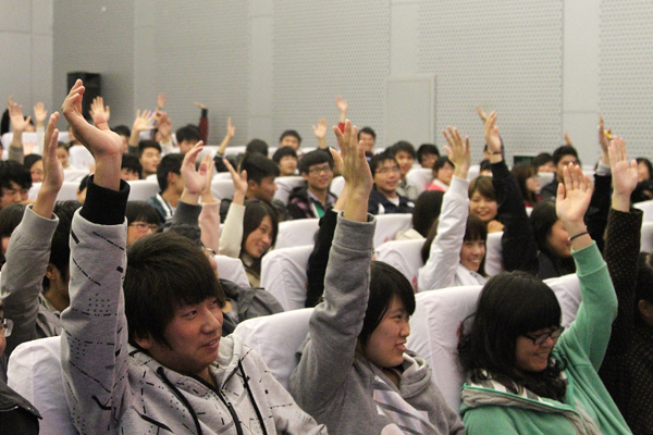 报告中,洪老师诙谐地用“混”字,开启了讲座的话题。他以生动幽默、深入浅出的语言,结合自身的经历,指导同学们如何理性面对严峻的就业形势,在大学里科学有效地提高自身综合素质,提升就业核心竞争力。倡议同学们应提高自身的学习能力,培养与他人的沟通能力,树立团结合作意识,学会深思,学会感恩,以此来提高求职成功率。