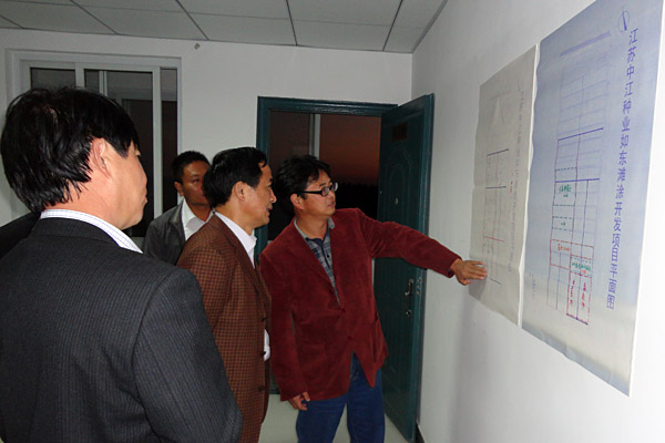 朱洪生书记实地检查了滩涂开发项目的在建工程,听取了中江科技情况汇报,询问了在建工程进展、工程质量监管以及土壤改良情况。在随后的调研工作会议上,朱书记充分肯定了中江科技半年多来的工作成绩,要求在基地建设过程中根据工程进度牢牢把握好工程质量,确保财政项目落到实处,按期完成项目建设。同时,他要求中江种业股份有限公司根据当地实际情况,积极有效地开展土壤改良工作,积极思考、认真研究耐盐农作物品种和耐盐苗木品种,要在土壤改良的方法和耐盐植物品种的筛选、研究、引进上下功夫,力争通过一个时期的努力,摸索出适合当地滩涂改良的创新型技术措施和耐盐植物新品种。