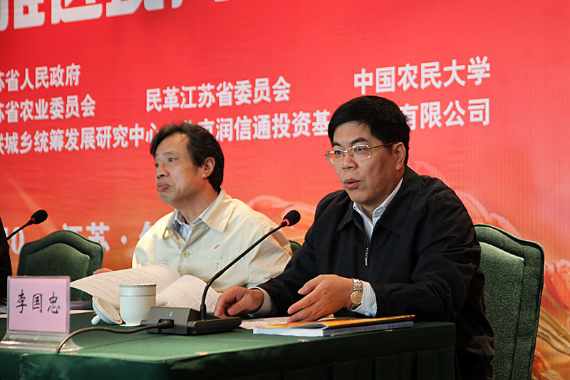 李国忠副书记与程崇庆副主席分别代表镇江市和江苏省在开幕会上致辞。周铁农主席发表了重要讲话,他首先阐述了此次研讨会的重要意义,强调培育农村创业人才是建设社会主义新农村、贯彻落实国家“十二五”发展规划纲要和人才强国战略的必然要求。他强调当前搞好“三农”工作要着重解决好以下几个问题:一是要进一步解放思想、提高认识,推进农业的发展;二是要大力推进改革创新,进行农业农村体制改革;三是要以科学规划为前提,做好培育农村创业人才工作;四是要加大改革研究力度,对创业人才提供政策与制度支持;五是要在全社会形成培育农村创业人才的良好氛围。最后,他希望与会人员要就创业人才培育的意义及创业人才培育的经验和做法开展深入交流和探讨,为推进现代农业献计献策,共同为推进社会主义新农村建设贡献力量。