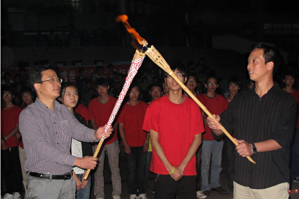 象征辛亥革命圣火的火炬在师生手中传递