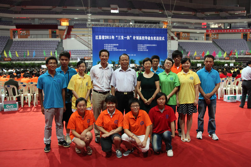 2011年8月12日,江苏省2011年“三支一扶”计划高校毕业生出征欢送仪式在南京奥体中心举行。省委常委、常务副省长、省委秘书长李云峰出席仪式,为各队学生代表授旗并作了重要讲话,勉励广大同学要扎根基层,服务基层,给党和人民交上一份满意的答卷。