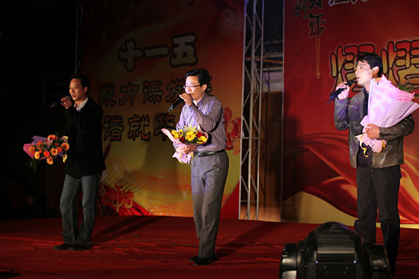 学院院长黄焱、副院长俞禄生、副院长苏小冬等院领导出席晚会。黄焱院长代表校党委和行政发表了热情洋溢的新年致辞,黄院长用精炼而又富有内涵的语言总结了过去的2010年校园处处有精彩,作为学院“十二五”开局之年的2011年,黄院长希望广大师生立足学院事业发展的新起点,追求卓越,再续辉煌,更攀高峰。寄语同学们博学修身,德技双长,青春飞扬。