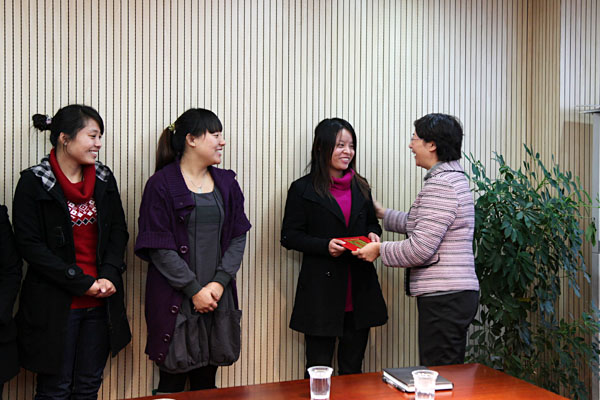 会后,学院苏小冬副院长在综合楼7楼会议室与志愿者们进行了亲切座谈,团委及相关系部负责人一同出席。苏院长首先代表学院向各位志愿者表达了诚挚的问候,对他们的志愿服务精神予以高度的赞扬。在全面了解了志愿者们志愿服务期间的工作、生活和学习等情况后,苏小冬副院长详细询问了四名志愿者同学服务归来的就业问题,并郑重表示学院将尽可能地为志愿者们提供帮助与支持!最后,苏小冬副院长为志愿者们颁发“荣誉团员”证书并送上了慰问金。