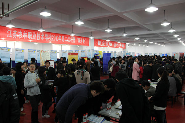 2010年11月27日,学院在北校区体育馆成功举行了2011届毕业生双选会。此次“双选会”受到了用人单位的热切关注,来自江苏、上海、浙江、广东等地的492家用人单位参加了现场招聘,共为毕业生提供了7500余个工作岗位,其中管理岗占22.5%、技术岗占70.7%。学院2011届毕业生人数共3343人,本次双选会提供的岗位数与待就业毕业生人数比达4:1。