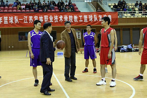 11月14日下午,江苏省教育厅青年男子篮球俱乐部的队员们在教育厅步锦昆副巡视员的带领下,来学院与永利官网教工篮球队举行了一场精彩的篮球友谊赛。永利官网李振陆副院长、党委王润贤副书记、党委委员江德明主任到场观看助威。