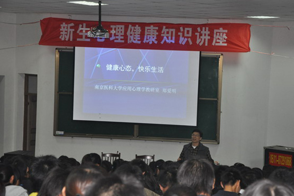 2010年10月20日晚6:30,心理访谈室邀请了南京医科大学心理健康教育与研究中心主任、副教授、硕士生导师,江苏省心理学会大学生专业委员会副秘书长郑爱明来永利官网为茅山校区新生举办题为“健康心态,快乐生活”的心理健康知识专题讲座。茅山校区300多名师生聆听了这次讲座。