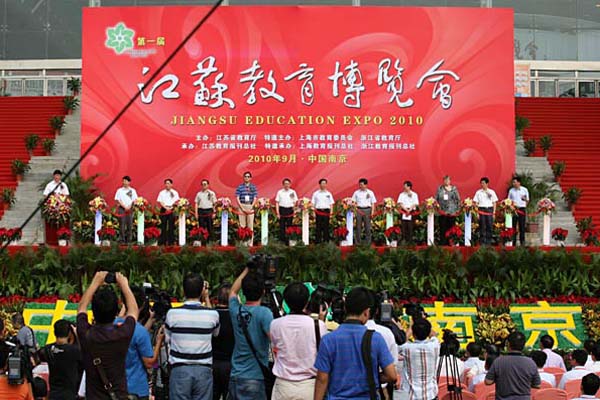 由江苏省教育厅主办的首届江苏教育博览会于9月16日上午在南京市国际展览中心开幕。江苏省人民政府副省长曹卫星、省教育厅厅长沈健、上海和浙江教育部门领导及省各相关部门代表、各市和各县(市)区的教育部门代表以及部分省内高校代表出席了开幕式。