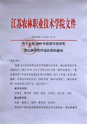 在第二十六个教师节来临之际,永利官网2009年度教学优秀奖、教坛新秀奖评选已经揭晓。吉根宝等7位老师获得教学优秀奖,关颖等5位老师获得教坛新秀奖。希望全院教师能够向获奖同志学习,认真钻研教育教学,为提高永利官网教育教学质量作出更大的贡献。