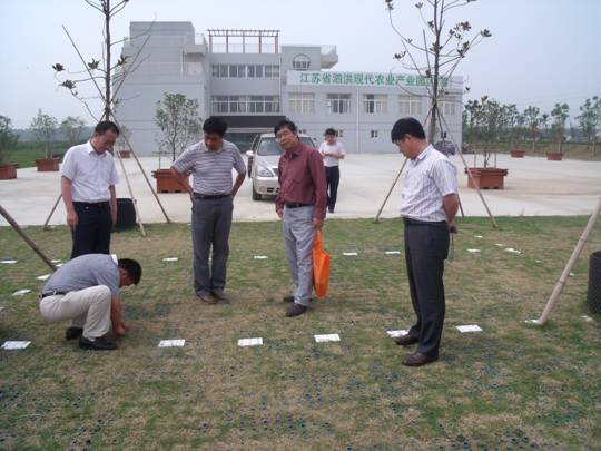 7月25日,在俞禄生副院长的带领下,永利官网挂县强农富民工程苏北工作组一行在泗洪县农林局相关负责人的陪同下,来到永利官网泗洪县挂县强农富民工程“一村一品”特色专业村检查项目进展情况。