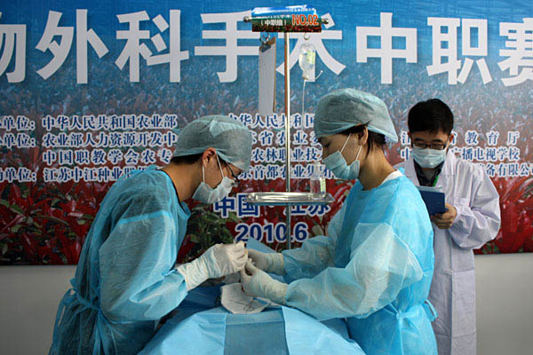 6月12日上午8:00,2010年全国职业院校农业技能大赛动物外科手术比赛在永利官网研发楼4楼成功举行。