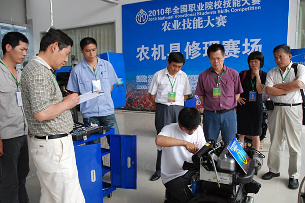 6月12日上午8点,2010年全国职业院校技能大赛农业技能大赛农机具修理赛场,随着总裁判的一声哨响,农机具修理比赛拉开了帷幕。本次比赛分为检查调整柴油机供油提前角,排除轮式拖拉机电路、油路故障两项赛程。来自全国36所院校的36名选手参加了本次比赛,其中中职选手22人,高职选手14人。比赛中,参赛选手沉着发挥,他们规范、娴熟、标准的技术操作赢得了裁判们的高度赞扬,从检测、维修、调试,到最后将使用过的工具一一擦拭干净、摆放整齐,每一环节都一丝不苟的完成,展现出了农业职业院校学子精湛的农机修理技能和良好的精神风貌。
