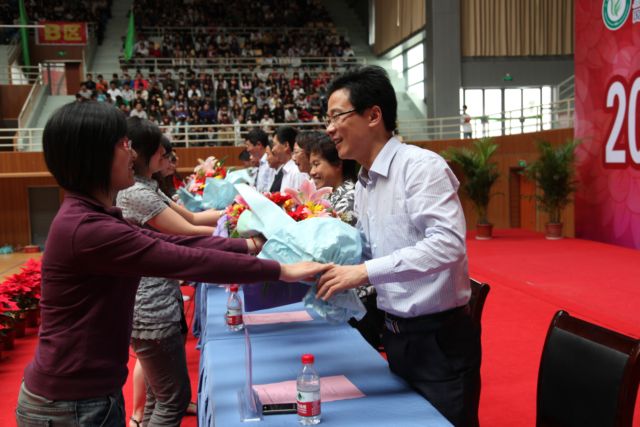 最后,毕业生代表向出席典礼的院领导献花,以表达对母校老师的感激之情。