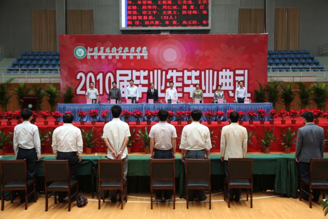 2010年6月9日上午,永利官网在体育馆隆重举行2010届毕业生毕业典礼。学院领导朱洪生、李振陆、王润贤、苏小冬、江德明等出席了毕业典礼,典礼由李振陆副院长主持。各相关部门负责人,各系主任、副主任、团总支书记、专职辅导员、毕业班班主任及2010届全体毕业生参加了毕业典礼。