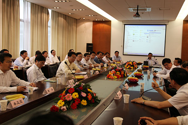 张书记一行参观校园后,来到北校区图书馆一楼会议室,听取了学院党委朱洪生书记作的关于学院发展三大特色的情况汇报。张书记表示,通过学院与泗洪的挂县强农富民工作这个窗口,他热切地企盼学院能将种子洒到苏北广阔的大地,把技术带到苏北,带动当地的农民富起来。
