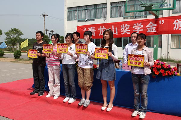 2010年5月19下午,江宁校区2009-2010学年“青龙山奖学金”颁奖仪式在校区篮球场隆重举行。“青龙山奖学金”捐赠方南京青龙山生态园林开发有限公司副总经理林洋先生,学院苏小冬副院长,学院党委委员、办公室江德明主任,江宁校区管委会常务副主任、党总支汪国好副书记,江宁校区管委会副主任、学院教务处薛怀清副处长和江宁校区后勤服务中心马洪德先生参加了颁奖仪式,获奖学生、各班辅导员及校区学生共2000多人参加了颁奖仪式。仪式由江德明主任主持。