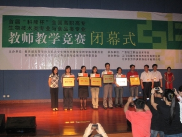 由教育部高等学校高职高专生物技术类专业教学指导委员会和教育部高等学校高职高专食品类专业教学指导委员会联合主办的首届“科隆杯”全国高职高专生物技术类专业与食品类专业教师教学竞赛于2010年5月13日至17日在广东轻工职业技术学院举行。经过预赛选拔,来自全国43所职业技术院校的143位选手参加了决赛。