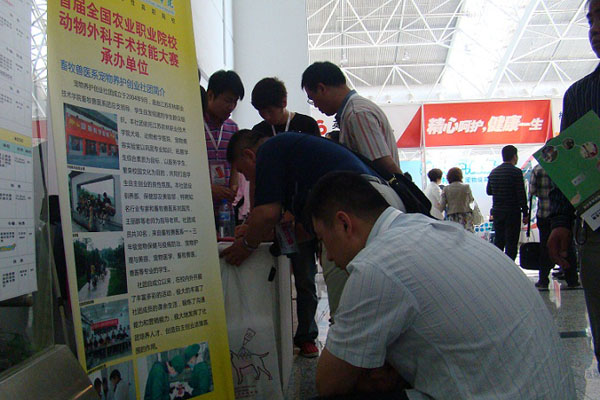 在大会设置的人才交流处,宠物养护创业社团青年志愿者充分利用此次展示农林学院形象的机会,积极地向参会人员宣传学院的办学成果、办学特色,共收集了150余家来自全国各地的知名宠物医院的招聘信息,为永利官网毕业生提供就业岗位500多个。