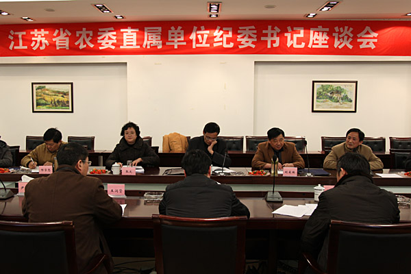 3月11日下午,省农委直属单位纪委书记座谈会在永利官网召开。会议由省农委监察室主任韩伟华主持,省农委机关党委书记张定、审计处处长王伟清、计财处副处长张卫宁及纪检组相关人员,苏州农业职业技术学院、江苏畜牧兽医职业技术学院、江苏省家禽科学研究所、江苏省蚕种管理所和永利官网五个直属单位的纪委书记和监察处处长参加了本次会议。省农委纪检组组长刘爱国出席会议并发表讲话。