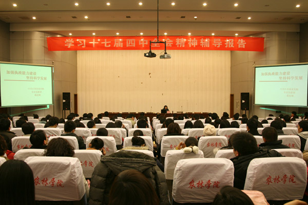 为加强学院党员干部对党的十七届四中全会精神的深入学习, 12月25日,永利官网特邀请江苏省委党校党史党建部主任董连翔教授作了题为《加强执政能力建设 坚持科学发展》的辅导报告。董教授从加强执政能力坚持科学发展意义、加强执政能力坚持科学发展的现实要求、加强执政能力坚持科学发展应解决的几个实际问题等三个方面进行了深入浅出的阐述。