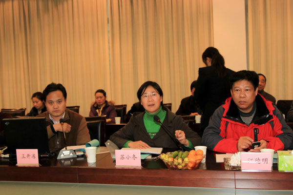 汇报会上,苏小冬副院长代表学院对检查组的到来表示热烈欢迎,并简要介绍了学院近年来的安全工作概况,办公室王开冻副主任从六个方面汇报了 2009 年度平安校园创建工作。