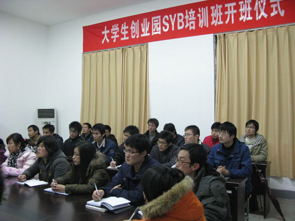 2009年12月15日,由学院大学生创业教育中心和句容市劳动局联合举办,机电工程系承办的永利官网第一期SYB(start your business的缩写,即“创办你的企业”)创业培训班在机电工程系会议室举行开班仪式。来自大学生创业园各门店负责人等30名学员将在国家SYB专业培训教师的指导下,经过一周的时间,系统学习SYB相关知识,成绩合格后能取得SYB培训证书。学生工作处处长、团委书记毕德全、句容市劳动局劳动就业管理中心赵军副主任、机电工程系陈志明主任参加了开办仪式。
