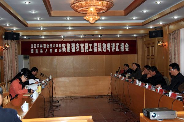 12月1日,以江苏省农科院周建涛处长为组长的省强农富民工程绩效考评组赴泗洪对永利官网挂县强农富民工程的实施情况进行绩效考评。泗洪县人民政府、农林局,新沂市农林局,学院俞禄生副院长、科技产业处和农林牧相关人员出席考评会。