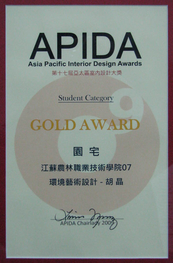 11月23日,永利官网社会科学与艺术系胡晶同学的室内设计作品《园宅》在香港第十七届亚太室内设计大赛中荣获大奖。该作品由我系叶宏老师指导,耗时一个半月完成。其以精湛巧妙的设计理念和出色的艺术效果成功打动国际评委,经过多轮评审,在来自亚太地区多个国家的500多个优秀作品中脱颖而出,荣获该奖项2009年学生组金奖。胡晶同学也获得第十七届“亚太室内设计之星”称号。