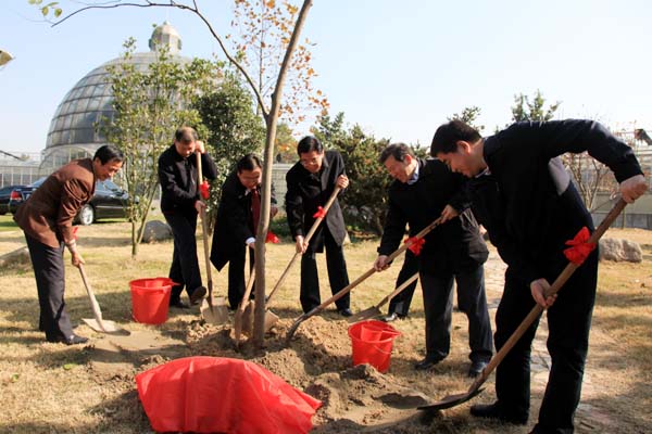 学院党委朱洪生书记陪同王晓初副部长一行视察了校园和农博园,并共同在友谊广场挥锹培土植树。
