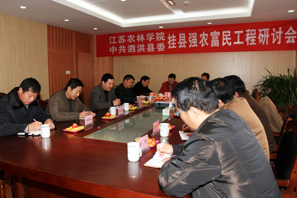 在学院党委朱洪生书记、俞禄生副院长的陪同下,冯书记一行参观考察了农博园、彩色苗木基地和农耕文化馆。参观结束后,冯岩一行与永利官网农林牧等系相关负责同志举行“挂县强农富民工程”研讨会。会上,冯书记对学院给予泗洪的无私帮助和大力支持表示感谢,并作了该县高效农业发展及挂县强农富民工程的情况介绍,随后,双方就进一步深入扩大交流合作进行了积极的探讨。