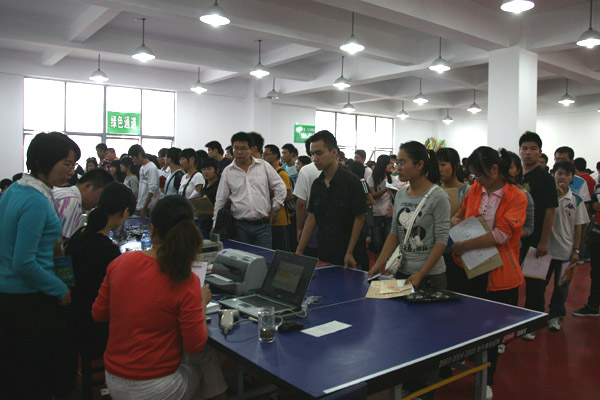 新生们独立办理报到手续