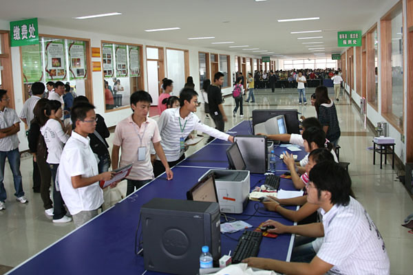 新生有序排队办理相关手续