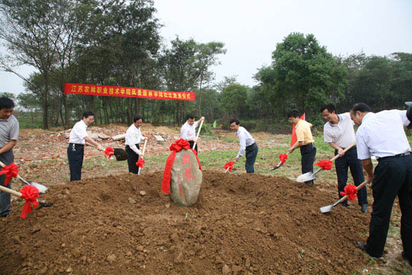 2009年9月10日上午8:30,学院茅山园区举行了庄重而简洁的风景园林学院新校区奠基仪式。院党委书记朱洪生、院长黄焱、副院长俞禄生、党委副书记王润贤和句容市委书记童国祥、副市长高庆华等领导为奠基石挥揪培土。