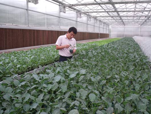 自驻村以来,颜志明老师根据苏北主要的蔬菜消费市场的调查,结合当地土壤及气候条件先后引进欧美杂交高级黄色花椰菜、美国西兰花及瑞克斯旺杂交甜椒等8个蔬菜新品种。为了确保蔬菜种苗能够及时应用于生产,颜老师亲自在泗洪县农业科技示范园进行育苗生产,并且全部采用穴盘育苗技术,确保生产出长势壮、抗逆性强的蔬菜种苗。经过近35天的种苗培育,全部种苗于18-19日送到示范户手中,此次补贴种苗近2万余元。随后,颜志明老师深入田间,指导示范户正确地作垄、定植,并且详细讲解了蔬菜定植后一段时间的管理要点。在田间,颜志明老师针对当地土壤保水、保肥性差的现状,要求示范户全部采用滴灌技术,真正地把先进的灌溉技术应用于生产。