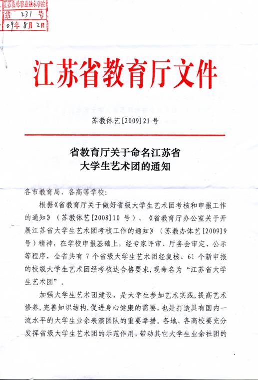 经省教育厅专家评审、厅务会审定、公示等程序,永利官网合唱团被命名为“江苏省大学生艺术团”。