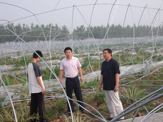 王永平主任一行仔细察看了受灾情况,就大棚维修、蔬菜补种及夏季蔬菜生产方面提出了许多建议,并在现场亲自指导救灾工作。他们急农民之所急、做农民之所需的精神得到了当地政府及农民的充分肯定和赞扬。
