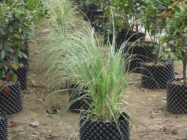 容器育苗区现有的品种有北美枫香50株,大叶冬青50株,红叶石楠球100株,红枫50株,矮蒲苇100株,金叶柳100株。这些容器苗按高矮搭配布置在一起,应用了立体栽植模式,收到了良好的园林效果。