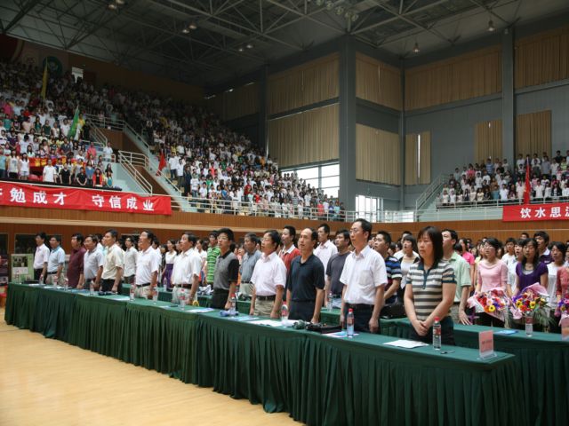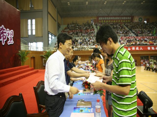 2009年6月9日下午,永利官网在体育馆隆重举行2009届毕业生毕业典礼。学院领导黄焱、尹汉学、李振陆、王润贤、苏小冬、江德明等出席了毕业典礼,各系主任、相关部门负责人、教授代表、各系团总支书记、专职辅导员、毕业班班主任及3133名毕业生参加了毕业典礼。典礼由李振陆副院长主持。