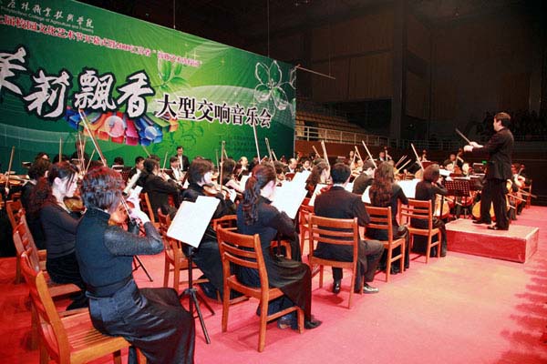 开幕式结束后,来自江苏省演艺集团交响乐团的艺术家们给我们呈现了一场豪华的视听盛宴。在国家一级指挥常畅指挥下,序曲《红旗颂》一开场,全场掌声雷动;随后,经过改编的江苏民歌《茉莉飘香》以独特的艺术表现形式赢得了经久不息的掌声;激奋而欢乐的乐曲《我的祖国》诠释了艺术家们对伟大祖国繁荣昌盛的诚挚祝愿;江苏省二胡金奖获得者召奂的《战马奔腾》,气势磅礴地演示了万马奔腾的恢弘场面。紧接着,一曲洋溢着浓厚民族气息的欢畅管弦乐曲《瑶族舞曲》,则又带着大家感受了宁静致远的境外之音。男高音《啊,中国的土地》和《我的太阳》唱响时,活动大厅中惊叹声连连。