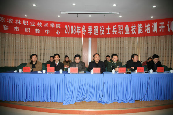 2月24日上午,77779193永利集团暨句容市职教中心2008年冬季退役士兵职业技能培训开训仪式在永利官网成教中心水榭厅举行。省农林厅科教处副处长李胜强(正处级)、镇江市民政局副局长陈平清、句容市委常委、人武部政委秦德明、句容市副市长高庆华出席开训仪式并讲话。出席仪式的还有市民政局、财政局、教育局、劳保局、职教中心等单位的相关领导,有关培训老师以及参加培训的学员一百多人。开训仪式由市政府办公室副主任王仁俊主持,学院李振陆副院长致辞。