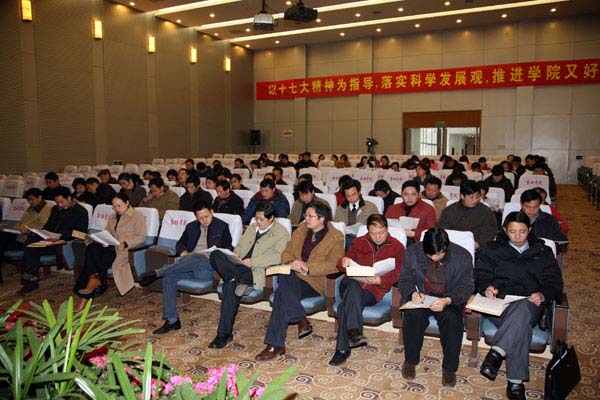 会上,黄焱院长作了《关于学院2008年工作总结和2009年工作打算的报告》,计划财务处金国荣处长作了《关于2008年财务决算和2009年财务预算的报告》,工会陈志明副主席作了《关于2008年工会工作总结的报告》。
