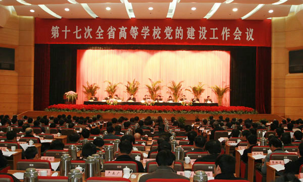 1月8日,江苏省委组织部、省委宣传部、省委教育工委在南京联合召开了第十七次全省高校党的建设工作会议,省有关部门负责人,各市委分管领导,全省各高校党委书记、校(院)长等300余人参加会议。省委副书记、组织部部长王国生出席会议并讲话,省委常委、宣传部部长杨新力主持会议,省委教育工委书记、省教育厅厅长沈健对全省高校党建工作作了具体部署。